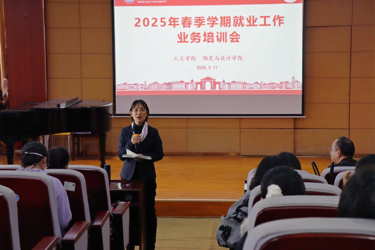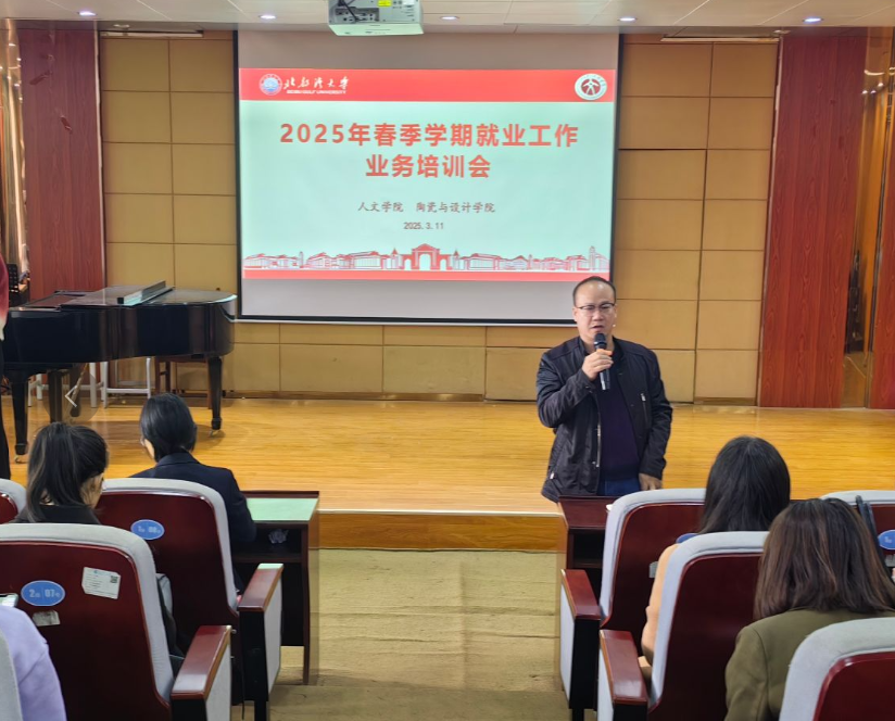 2025年3月11日,为全面提升毕业生就业服务工作的质量和效率,确保2025届毕业生就业工作的高效推进,我院在2A-208报告厅召开2025年春季学期就业工作业务培训会。会议由学院党委书记梁伟杰主持,党委学生工作部副部长、学生工作处副处长吴伟琴主讲,人文学院及陶瓷与设计学院参加了此次培训。