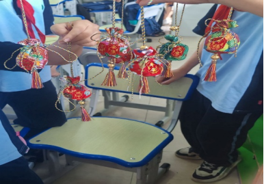 随着活动的推进,普通话推广与茶文化巧妙融入了游戏环节中。在“灯谜寻茶趣”环节,孩子们争相举起手来猜带有茶元素的灯谜,这也将活动的气氛推至高潮。在“茶香伴诗韵”环节,志愿者带领孩子们用标准普通话朗诵《山泉煎茶有怀》等经典茶诗,逐字纠正发音,让孩子们在朗朗书声中感受语言之美与诗茶意境。在香包挂饰DIY环节,志愿者与孩子们共同制作具有茶元素的香包,并鼓励学生回家后用普通话向家人介绍挂饰的制作过程与心意,让推普在香包的馥郁中愈浸愈浓。
