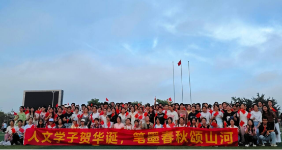 2025年10月1日8时,人文学院172名师生代表齐聚西区田径场,共同参加学校国庆升旗仪式,在晨曦中迎接中华人民共和国76周年华诞。