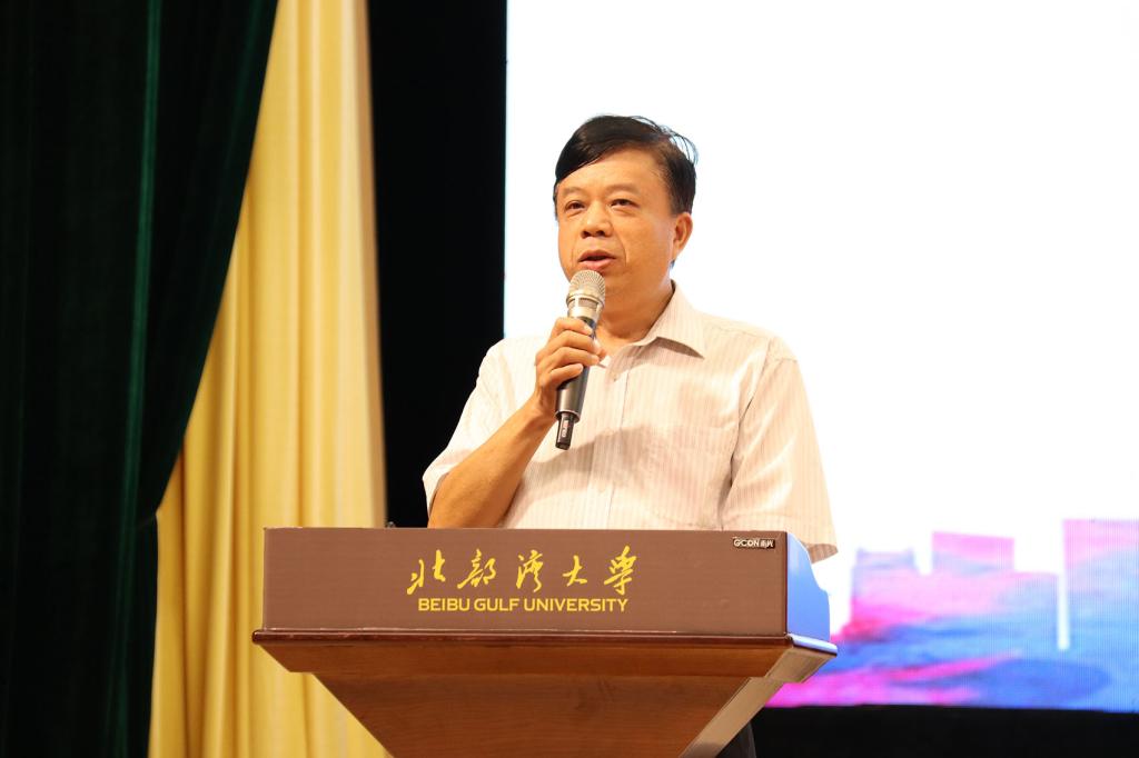 莫华善院长致辞中表达了他对全体新生的期盼、对人文学院未来的憧憬,他希望新生要清楚为什么要读大学,确立好未来目标;要勇于尝试,增强社会认知和专业技能;利用图书馆资源,博览群书,丰富自身内涵;坚持体育运动,增强体质;常思考、多计划,规划好大学生活。
