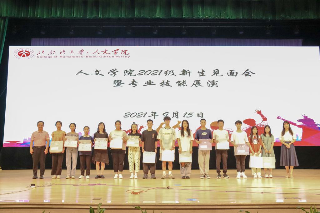 大会现场特别播放了学院为新生准备的人文学院宣传片,并赠送精美书签,知识抢答环节中,也为回答积极的新生赠送笔记本作为开学纪念品。