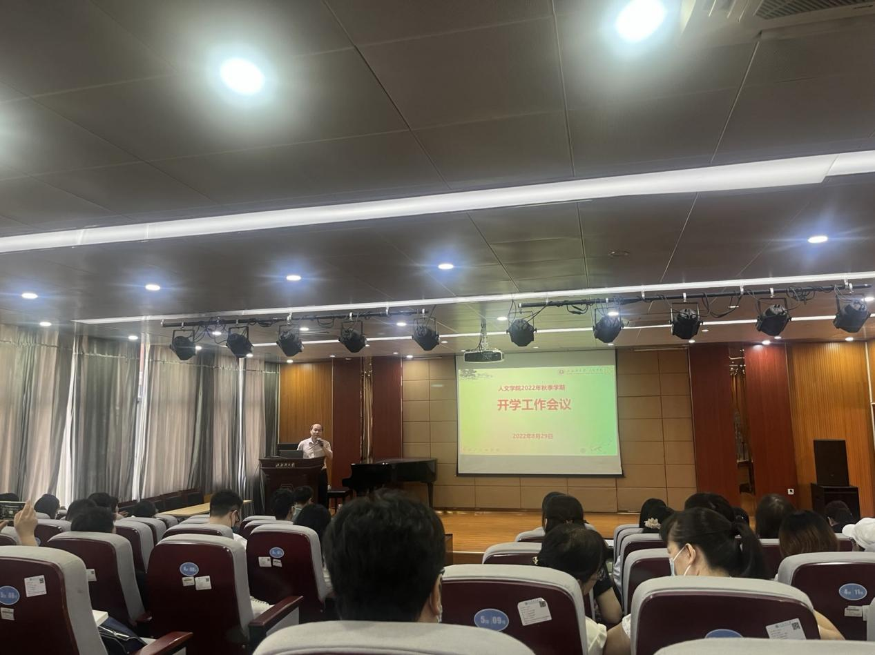 8月29日,我院2022年秋季开学工作布置会议在2号教学楼208报告厅召开,会议由院长莫华善主持,参会人员有郭怀辉书记、莫华善院长、何风雨副书记、曾美良副院长、侯艳副院长及人文学院全体教职工。