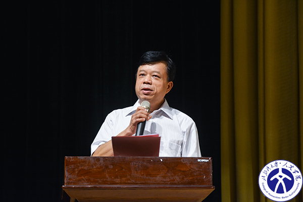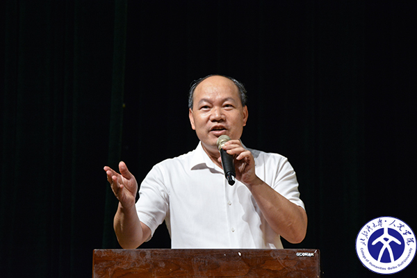 院长莫华善最后向全体师生进行致辞,表达了他对全体新生的期盼、对人文学院未来的憧憬。他从学习,生活,工作三个方面为新生们建议要明白读大学的重要性,找到自己的学习方式,充分利用图书馆资源,博览群书,还要坚持体育运动,增强体质,培养专业素养,练就职业本领。
