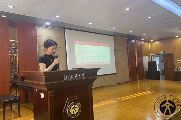 其次,蒙桂秀老师以充分的资料图片展示人文学院团委、学生会年度工作及各部门组织构建。她介绍其“为全院师生服务,助力青年成长成才”的宗旨,团委、学生会服务于学院团学方面的工作,充当师生沟通互联的桥梁,进行日常学风督查、组织开展各项校园德智文体、社会实践和志愿服务活动。