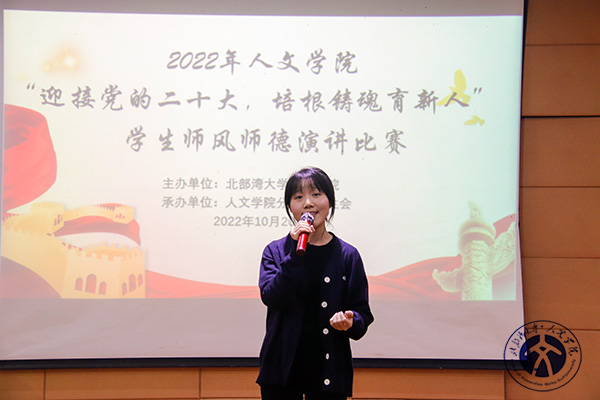 10月20日19:00,我院在2号教学楼208教室举办“迎接党的二十大,培根铸魂育新人”师德师风为主题的演讲比赛。我院辅导黄兴毅、黄健烨、石艳萍、苏菲四位老师莅临比赛现场并担任评委,来自中文本、汉教本、音乐本21级与22级的共18位选手参赛。