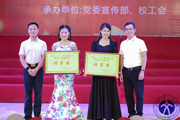 北部湾大学党委副书记陈锦山、陈湘如为我院合唱队代表颁发特等奖