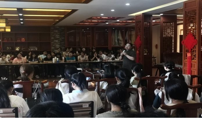 为了传承和弘扬中华优秀传统文化,提高同学们的审美情趣和文化素养,我院国际中文教育硕士点行业导师——南宁市芳君默茶工作室创始人、国家一级高级茶艺技师、国家一级高级评茶师刘芳教授于2024年5月31日下午在学院中华才艺馆作了“喫茶去——泡好生活里的一杯茶”的讲座,汉语国际教育专业学生到现场聆听。