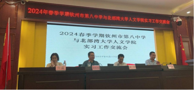 6月13日下午,我院汉教本211班专业实习工作交流会在钦州市第八中召开。出席交流会的人员有:我院院长钟其鹏、副院长何晨和钦州市第八中学副校长苏进、副校长郑守勇,以及指汉教本211班的全体同学和指导老师。