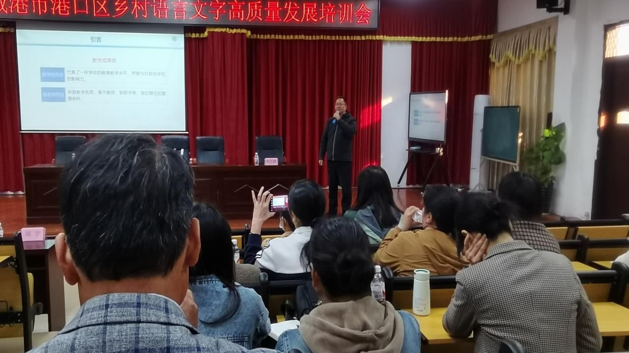北部湾大学人文学院院长钟其鹏教授在防城港市港口区作题为《教学成果培育与报奖》的培训