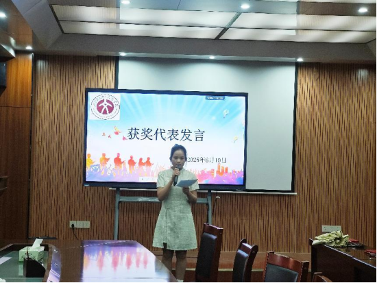 本次颁奖仪式对“三笔字”大赛及师范生技能大赛获奖的同学进行荣誉颁发。中文本221班刘锦玲和中文本222班韦秋婷分别作为“三笔字”大赛和师范生技能大赛的获奖代表发言,分享她们在比赛中的感悟和收获。