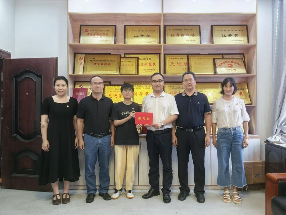 慰问最后,马副校长代表学校党委向姚霜送上慰问金,并寄语她深入学习党史,从先辈的奋斗故事中汲取力量,在日常学习生活中充分发挥党员先锋模范作用。此次慰问活动充分体现了学校党委对困难学生党员的深切关怀,进一步增强了党员对党组织的归属感和凝聚力。人文学院党委也将持续关注困难学生党员的成长,健全长效帮扶机制,深化文化育人体系,培养更多有担当、有作为的优秀人才。