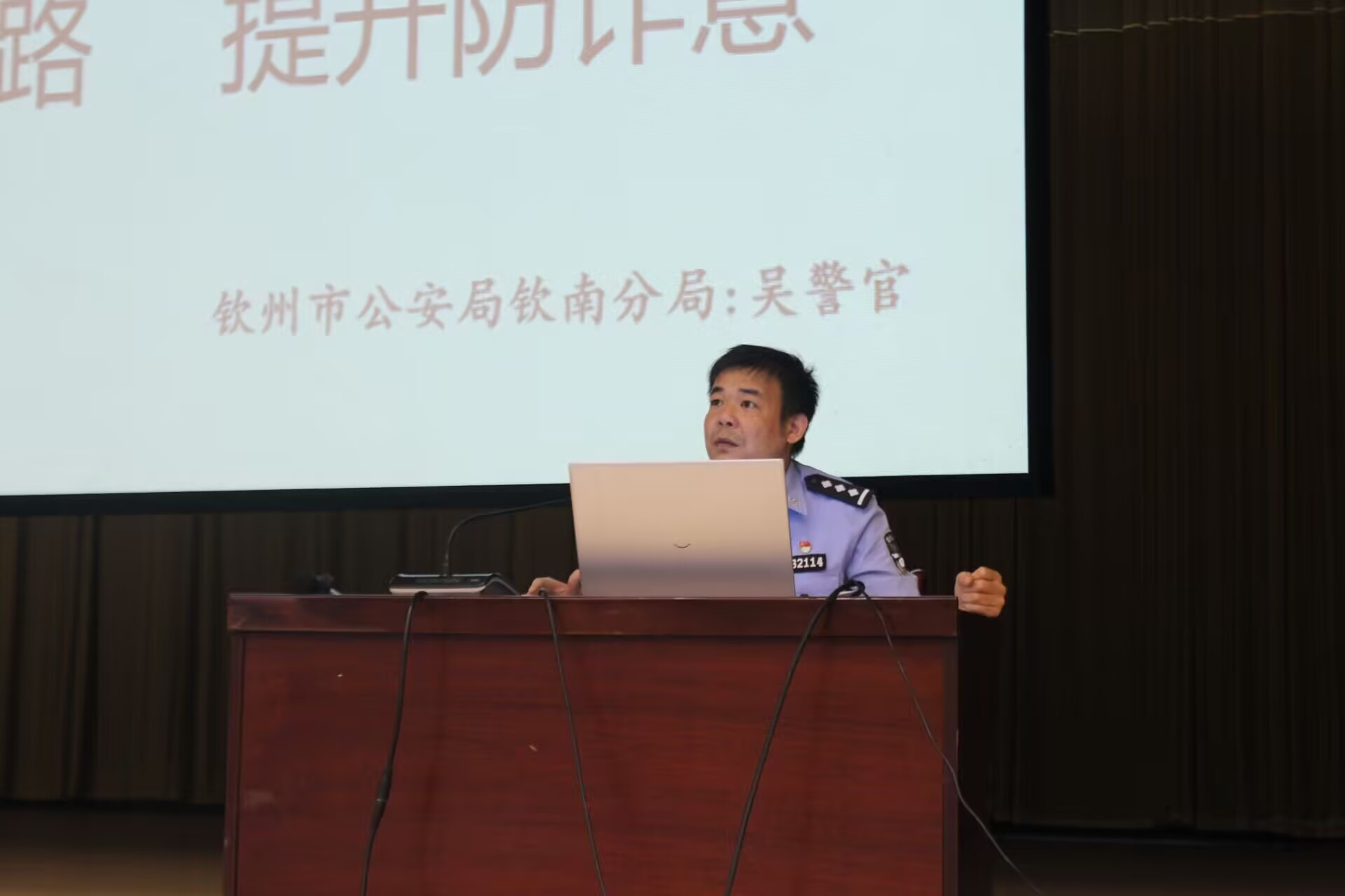 为加强校园法制教育建设,提高学生反诈防骗意识,人文学院院于4月13日晚19:00点在礼堂举办“抵制诈骗套路,提升防诈意识”主题宣讲活动,来自市公安局的驻校民警吴钦宁警官受邀为人文学院学子开展防范电信网络诈骗知识宣讲。