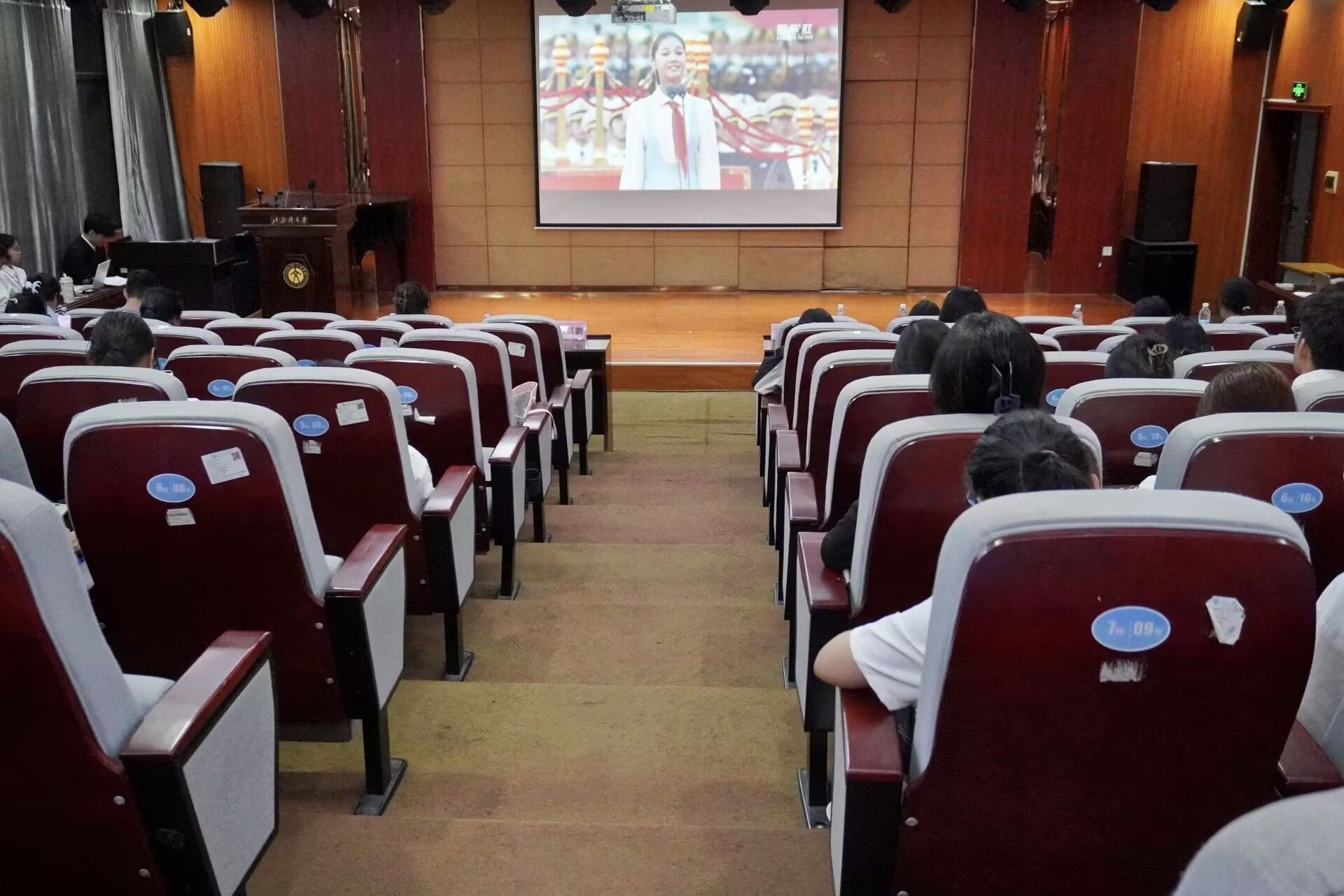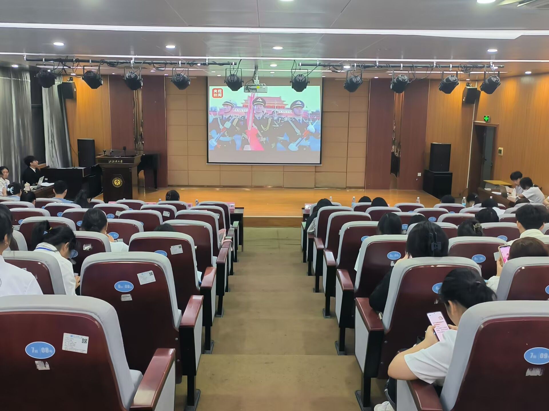 活动中,师生集中观看了两段爱国主义教育视频,一是建党百年之际天安门广场庄严的升旗场景,随着五星红旗在国歌声中冉冉升起,现场氛围庄严肃穆,广场上的群众目光坚定,满怀着对祖国的崇敬与热爱;二是建党百年时青少年在天安门广场激情朗诵的场景,一句句铿锵有力的誓言,传递出青春的力量与对党的忠诚、对国家的热爱。