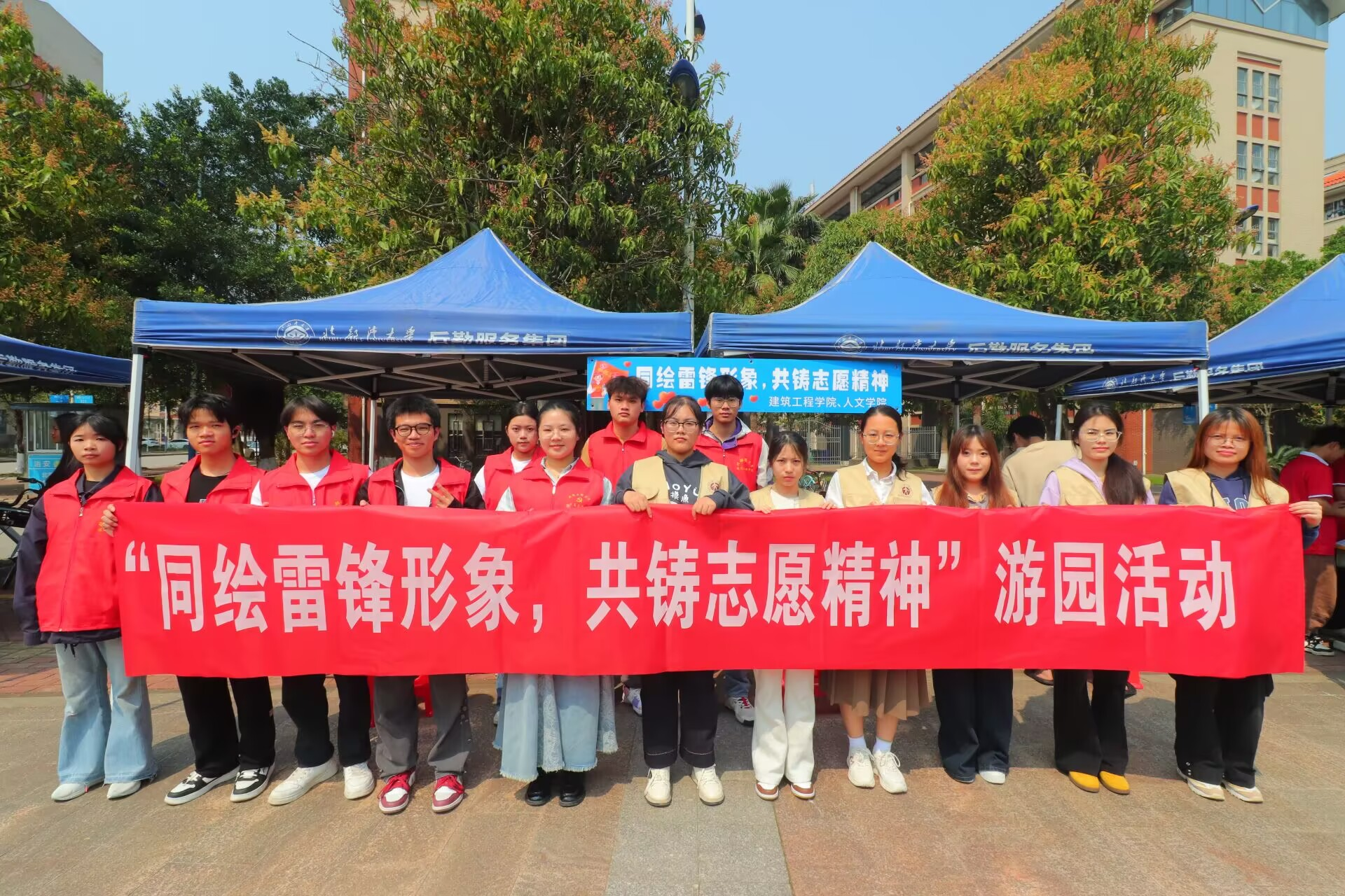 为弘扬雷锋精神,培养师生社会责任感,3月22日 - 23日,北部湾大学人文学院联合建工学院在大学生活动中心广场举办学雷锋志愿服务广场之“薪火雷锋行趣享游园情”游园活动。