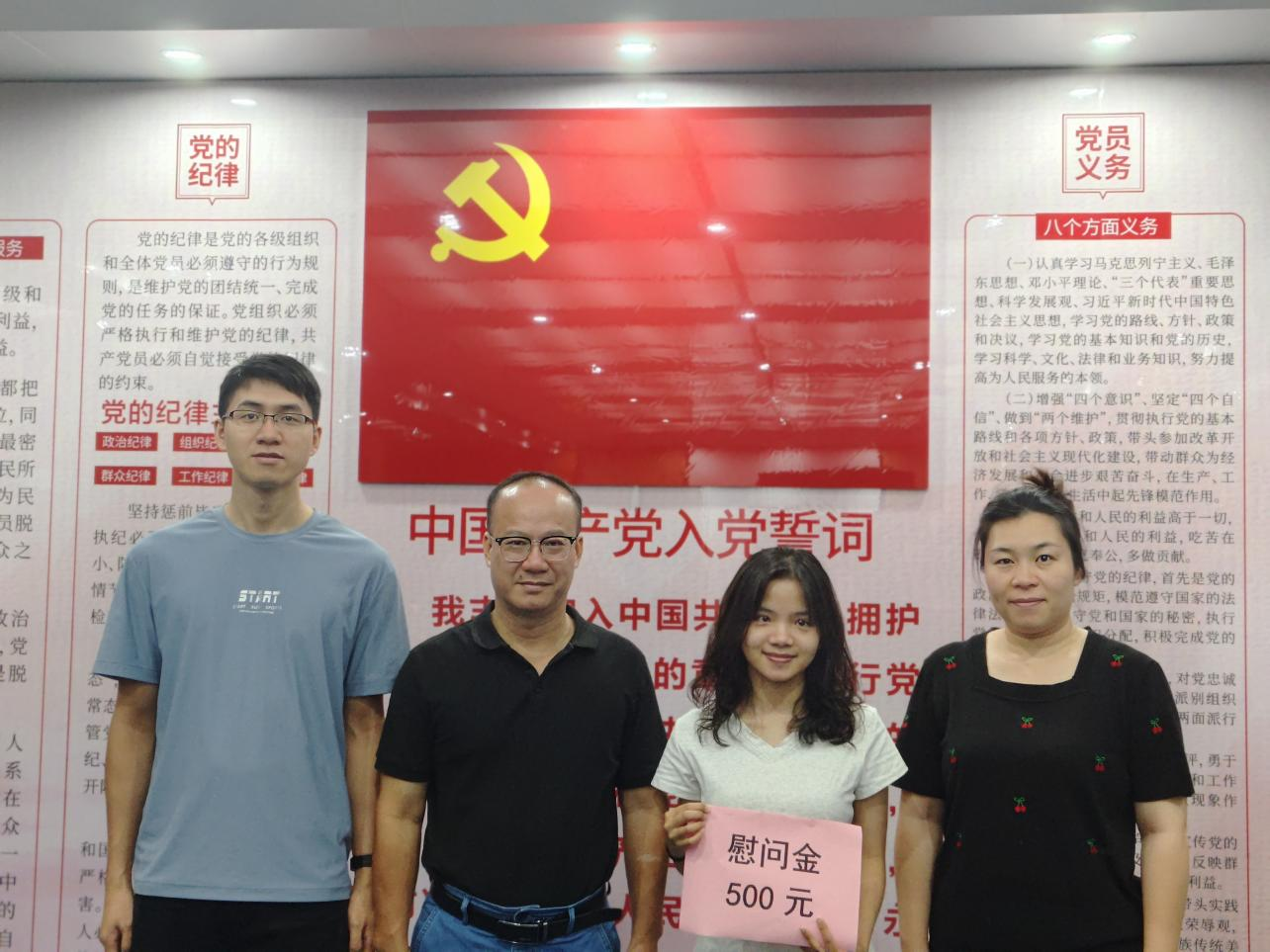 在此次慰问过程中,党委书记梁伟杰与蓝姣丽同志进行了亲切交谈,询问她在学习和生活上遇到的困难,并且鼓励她保持乐观心态,坚定信心、克服困难。党委副书记曾曦和黎政良老师也分别对蓝姣丽表达了关心和问候。随后他们为蓝姣丽同志送上慰问金,让她切实感受到党组织的温暖。