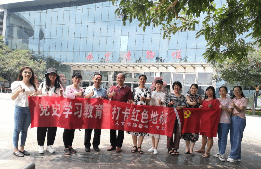 2021年5月23日,人文学院教师一支部开展“党史学习教育·缅怀英烈致敬英雄”打卡红色景点主题党日活动,赴南宁广西民族博物馆、南宁博物馆和邓颖超故居参观,12名支部成员参加了此次活动。
