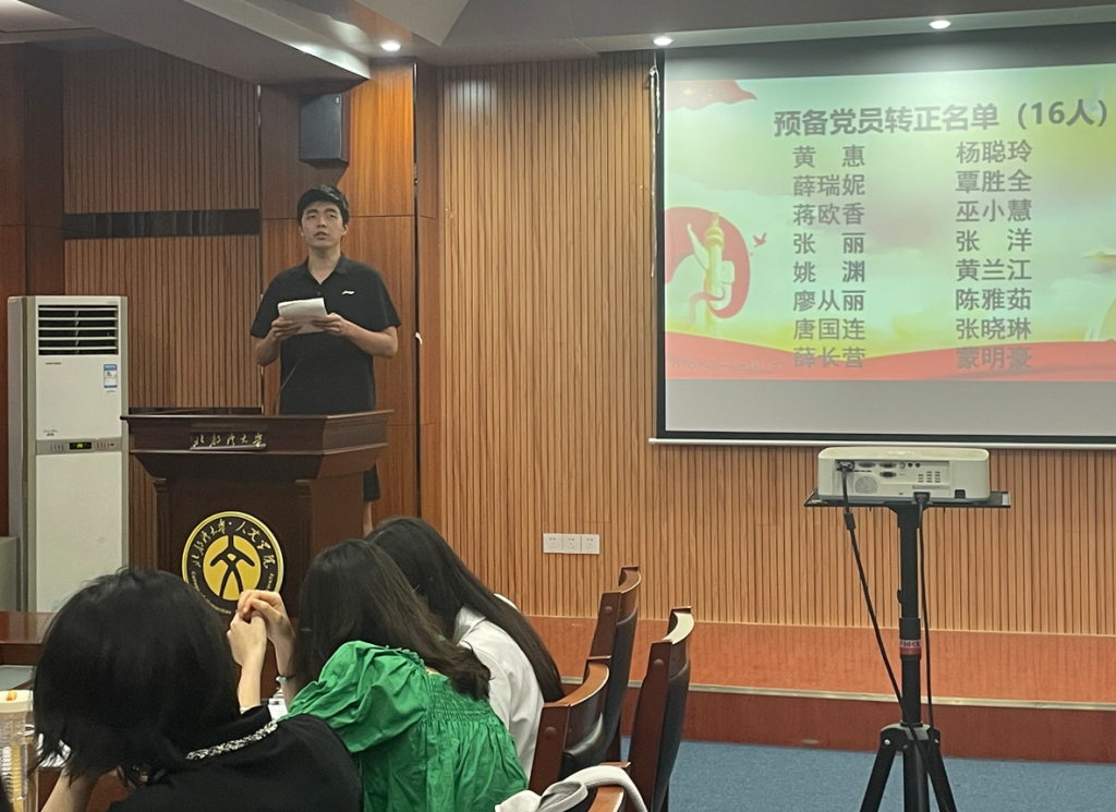 2022年6月3日下午,我院学生第一党支部于2A-423室召开本学期预备党员转正大会。本次大会由支部书记黄健烨主持,支部全体党员均参加会议。