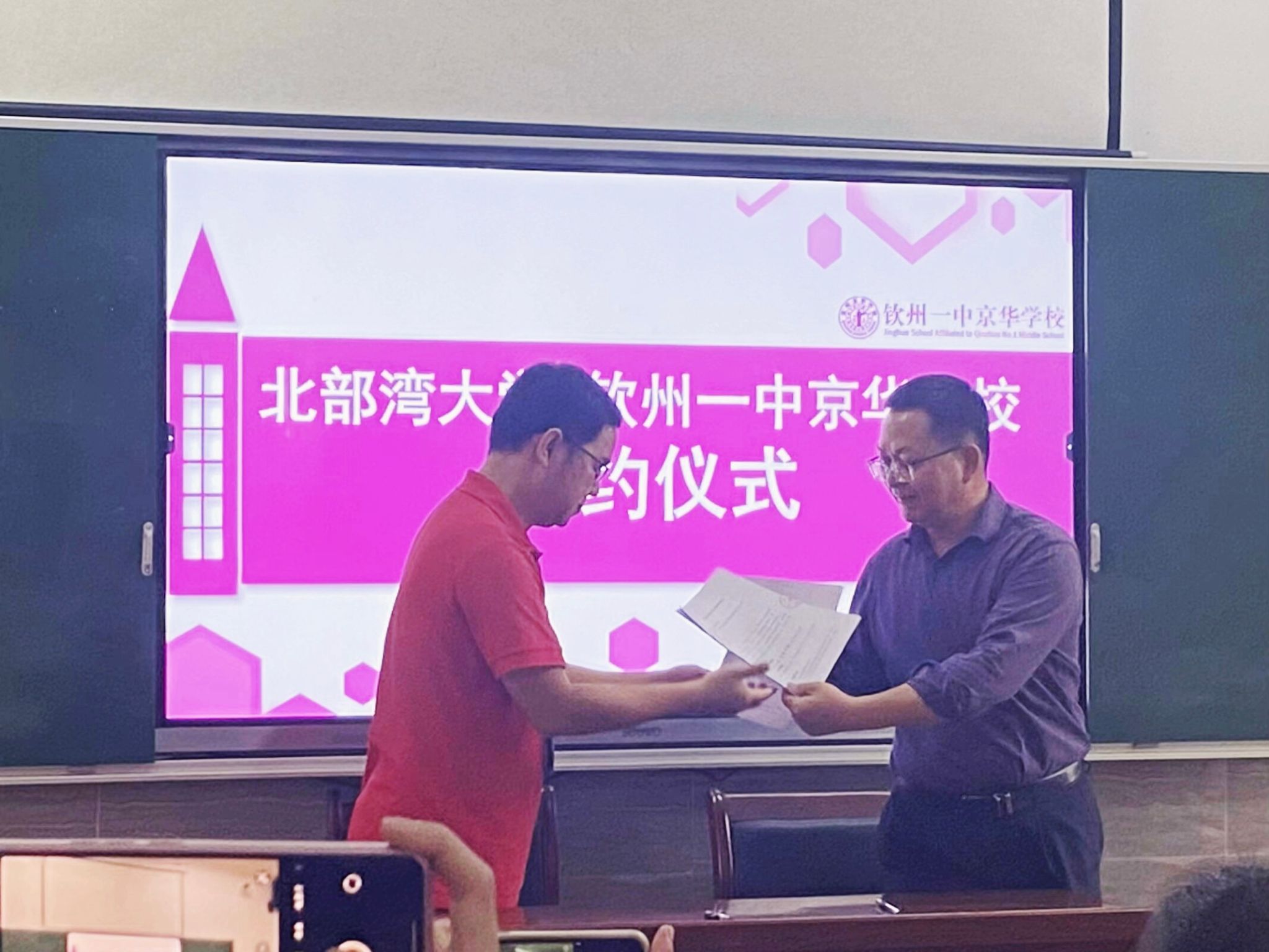 4月15日上午九时,我院钟其鹏院长一行到钦州市京华学校开展“访企拓岗”活动。京华学校校长宁国桂、董事长王庆祝参与了交流。会上,钟其鹏院长和宁国桂校长各自就学校和学院的发展状况、师资力量、人才培养等方面作了介绍,双方都表达了在教学科研、实习就业方面的合作愿望,我院岑亚霞老师作为教师代表发言。交流结束后,按计划进行了“京华与湾大共建实践教学基地”签约仪式。