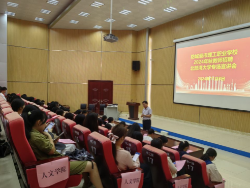 为全力推进2025届毕业生就业工作,11月8日上午,人文学院在3号教学楼101报告厅成功举办2024年秋教师招聘专场宣讲会。防城港市理工职业学校应邀参加此次宣讲会,人文学院及其他学院2025届毕业生到场参加。