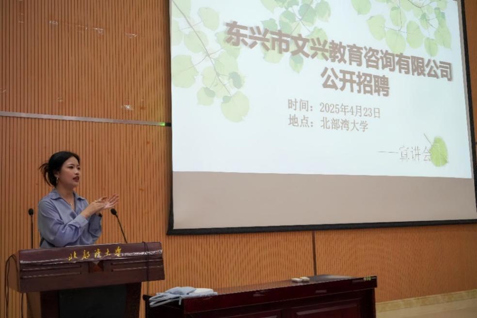 2025年4月23日,我院举办的东兴市文兴教育咨询有限公司招聘宣讲会在北部湾大学三号教学楼101教室举办。宣讲会吸引了2025届毕业生及在校非毕业生到现场聆听。