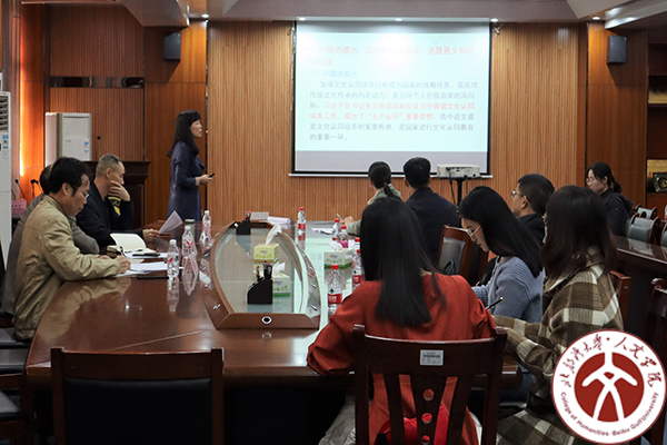2021年11月23日,我院黄福艳老师主持的全国教育科学 “十四五”规划2021年度教育部重点课题“统编高中语文教材文化认同类文本选编及教学研究”开题报告会在人文学院2A-423会议室举行。人文学院莫华善院长、理学院院长梁好翠教授、体育教学部主任李乃琼教授应邀作为开题评议专家到场指导,全体课题组成员参会。