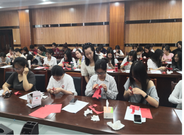 在讲座最后,韦丹霞老师还现场分发剪纸工具和红纸,亲自指导同学们动手体验剪纸艺术。在互动问答环节,韦老师准备了精美的期刊和小礼品,与同学们就剪纸的传承与发展进行了深入交流,现场氛围活跃。此次讲座不仅进一步激发了同学们对剪纸艺术的学习兴趣,也为培养个人才艺提供了新的途径。