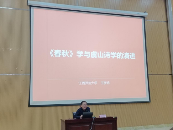 9月23日上午,江西师范大学的王彦明教授莅临我院开展主题为“《春秋》学与明末清初虞山诗学的演进”的学术讲座。讲座由人文学院侯艳副院长主持,讲座由文学院侯艳副院长主持,我院师生代表以及硕士研究生导师参到场聆听。