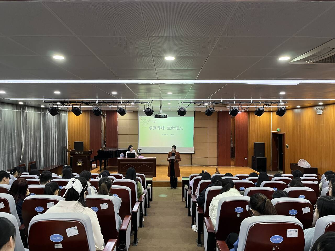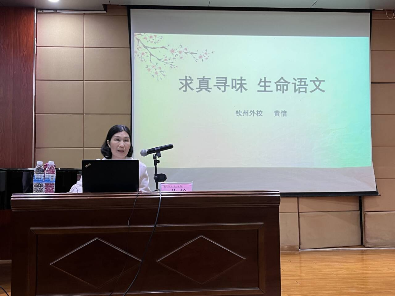 2023年12月5日晚,我院在2号楼208报告厅举办了教育研习专题讲座。本次讲座特别邀请了钦州市外国语学校科研处主任、中学正高级教师、广西特级教师、广西基础教育名师黄愔老师主讲,题目为“求真寻味,生命语文”。讲座由我院语言教研室主任姚锦莲老师主持,我院汉语言文学专业2020、2021级师范生聆听了讲座。