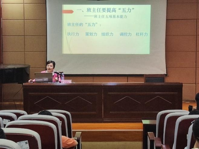 在讲座中,苏胜娟老师从班主任这一角色所应具备的专业素养与成长规律切入,根据自己积累多年的班级管理经验,结合实践案例,从班主任要提高“五力”、班主任要烧旺“一炉火”、班主任要学会“变式”、班主任要善用“效应”四个方面分享了班级管理的技能与技巧。在分享案例时,苏胜娟老师还与同学们互动,用生动幽默的语言鼓励同学们分享自己的见解,在互动中为同学们答疑解惑。