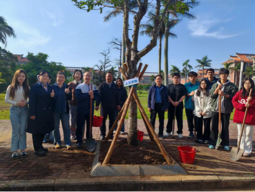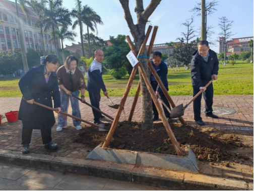 党委书记梁伟杰、院长钟其鹏等学院领导为树苗培土