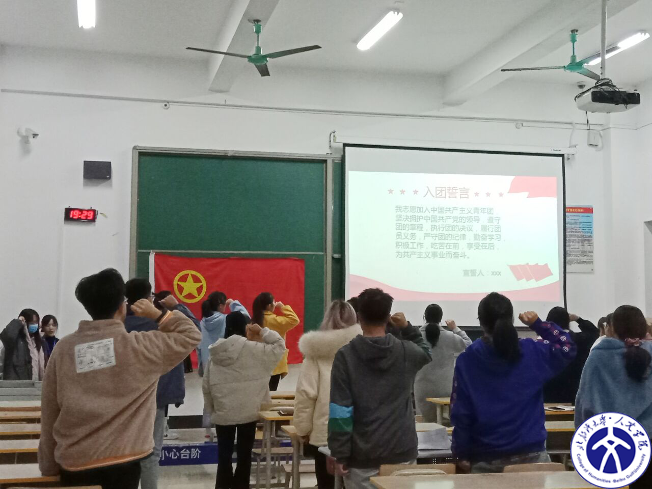 会议伊始,严玉婷、严琪琪、宁思乔三位新团员在团员代表在庞周蓉的带领下上台宣誓,全体与会人员起立作证,见证共青团再添新血液、新力量。而后,黄月芬老师分别为摄影展活动优秀组织班级和团日活动优秀组织班级颁奖,并肯定了各获奖班级的组织榜样作用。三位获奖班级团支书代表分享活动组织经验时,多次提到班级合作是组织好活动的关键所在,这为在场团支书提高团日活动效果提供了突破口。组织部部长蒙明豪对各班团日活动总结后讲解了评分细则,点明结合专业特色创新团日活动是关键。
