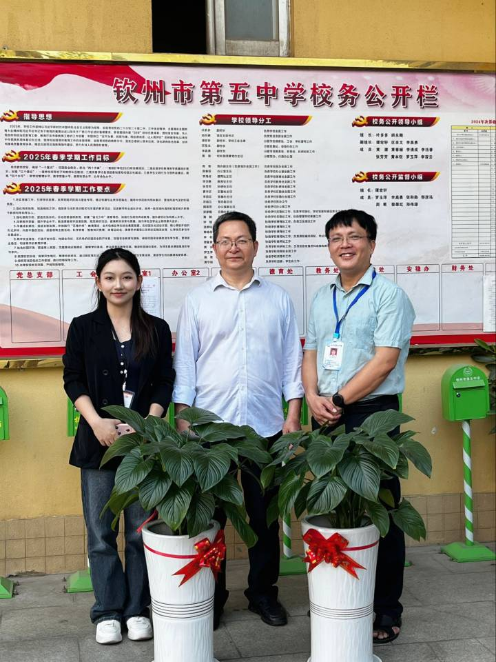 汉教本222班向钦州市第五中学赠送绿植致谢